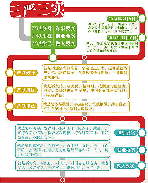 (三)始终坚持从严从实。坚持以严的标准、严的措施、严的纪律,坚持把自己摆进去、把职责摆进去,在教育上从严要求,在制度上从严规范,在监督上从严落实,坚决防止搞形式、走过场、做样子,努力在深化四风整治、巩固和拓展党的群众路线教育实践活动成果上见实效,在守纪律讲规矩、营造良好政治生态上见实效,在推动安全生产重点工作、加快实现全国安全生产形势根本好转上见实效。